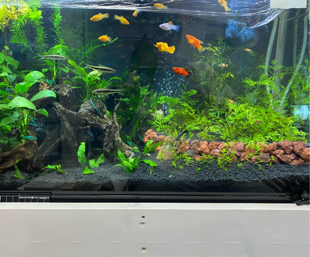 60cm水槽立ち上げから約2年経過しました。 水草のアメリカンスプライトが大きくなり過ぎてレイアウトもだいぶ崩れかけています( .. ) 陰茎水草コーナーを高床式にして2段にしようと考えています。